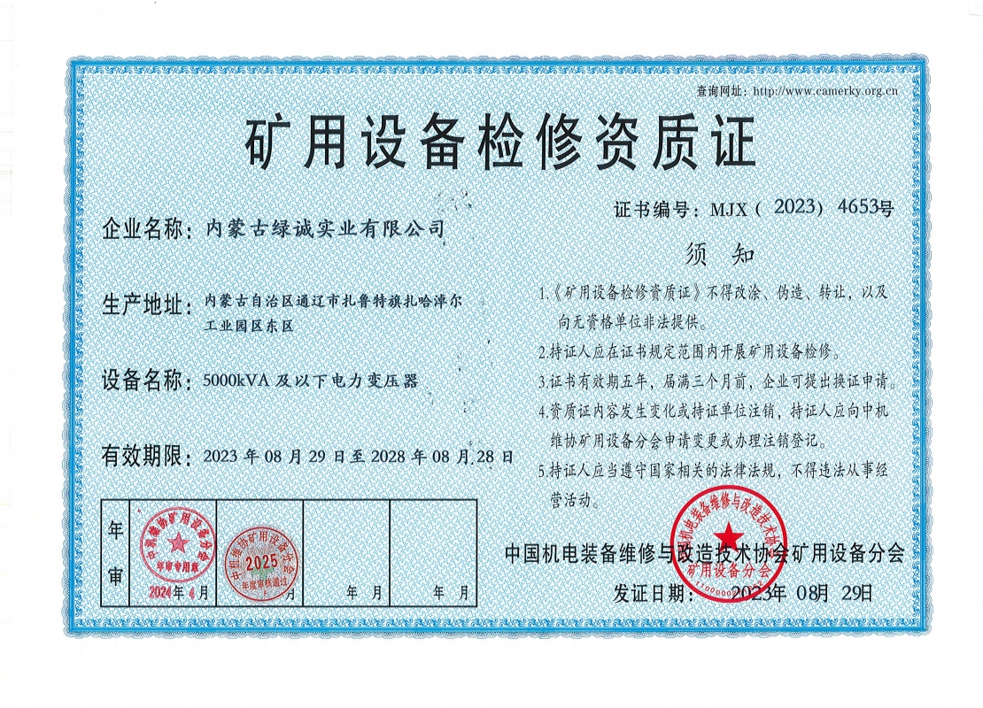 2018年我公司通過中國機電裝備維修與改造技術協(xié)會礦用設備分會審核并取得了9項礦用設備檢修資質(zhì)證書。公司本著“誠信為本 質(zhì)量為先 全心全意為客戶 ”的服務理念,圓滿完成各個廠礦的機械維修及配套服務,期待與您共同合作。